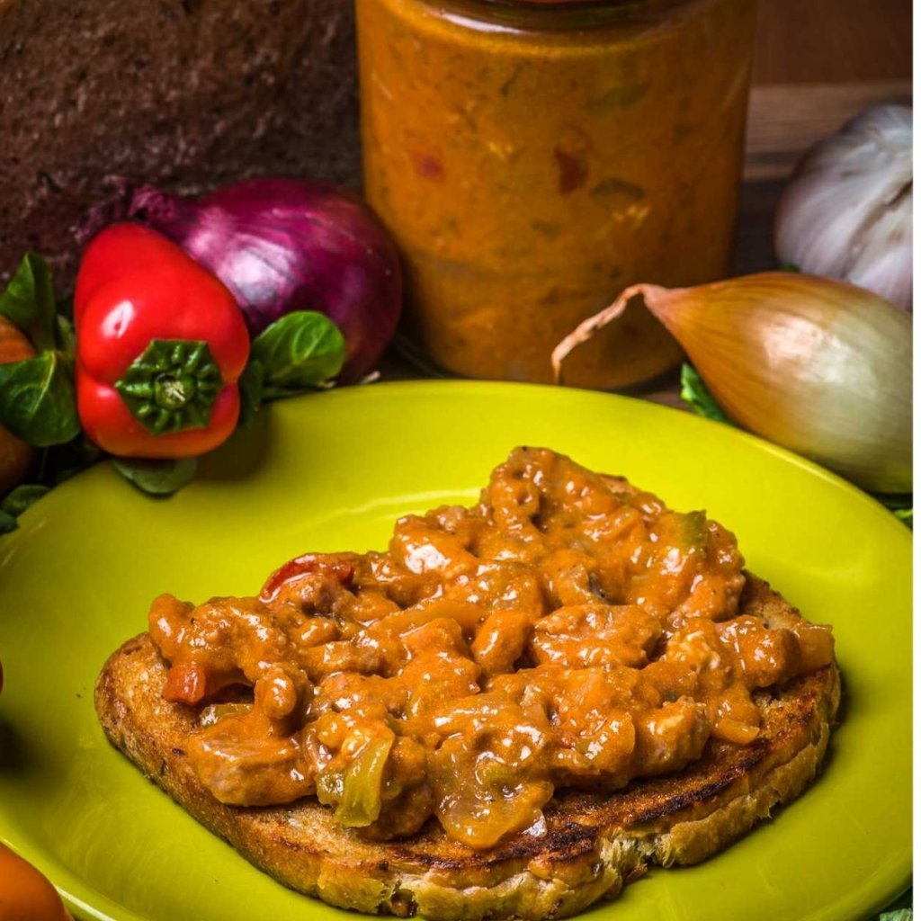 Složení: Vepřové maso (35%), cibule, kečup, paprika, žampiony, solamyl, sójová omáčka, sladká chilli omáčka, sádlo, bílé víno, sůl, pepř, směs koření, chilli. Výrobek může obsahovat stopy pšeničného lepku