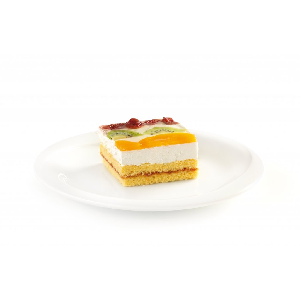 Složení: Trvanlivá šlehačka - pitná voda, hydrogenovaný rostlinný tuk, rostlinná vláknina, MLÉČNÉ proteiny, stabilizátor: E420ii,E463, emulgátory: E472e,E472b, SOJOVÝ lecitin, sůl jedlá, aromata,barvivo :E160a., Piškotová směs světlá - mouka PŠENIČNÁ, cukr, emulgátory:E472b,E477, glukózový sirup sušený, MLÉKO odtučněné sušené, škrob PŠENIČNÝ, kypřící látka:E500ii, jedlá sůl, barvivo: E160a, kyselina:E330, zahušťovadlo:E415, VEJCE melanžovaná - VEJCE, kyselina :E330, Paletta neutral - cukr, pitná voda, glukózový sirup, želírovací látka:E440ii, kyselina:E330, přírodní aroma s meruňkovou příchutí, Pitná voda, Kiwi 8%, Kompot jahody 5% - jahody, pitná voda, cukr, regulátor kyselosti:E330, Kompot broskve 8% - broskve půlené loupané, pitná voda,cukr,regulátor kyselosti:E330, Směs ovocná rybíz - směs ovocných dření, cukr, regulátor kyselosti: E330, želírující látka:pektin, koncentrát z černé mrkve, konzervant: oxid SIŘIČITÝ, Zeesan neutral (smetafix) - cukr, dextróza, želatina, LAKTÓZA, zahušťovadlo:E417.