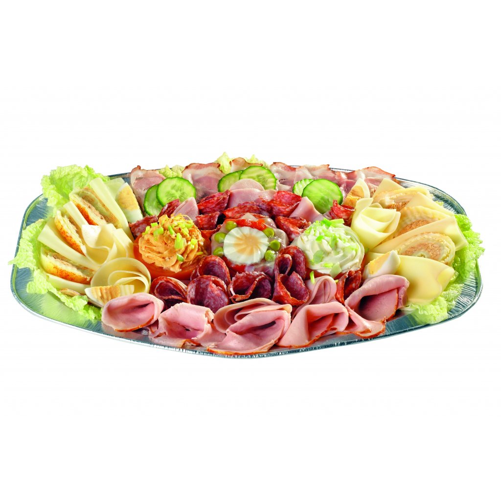 Složení: Debrecínka, dušená šunka, uzená krkovice, sýrová roláda, turistický salám, rajčata, salátová okurka, putimská pomazánka, pórek, pomazánka Šmitec, vařená vejce, čínské zelí, aspiková bábovka, sýr Eidam.